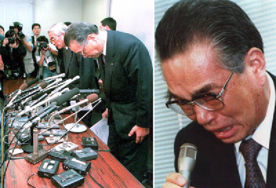 在记者会上,山一证券社长(总经理)野泽正平嚎啕大哭: