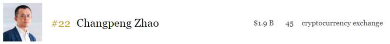 和叶刚,还有一位新晋中国新移民首富——赵长鹏。他2019年来新加坡定居,是加密货币交易平台币安(Binance)创办人,凭借19亿美元位于榜单第22名。