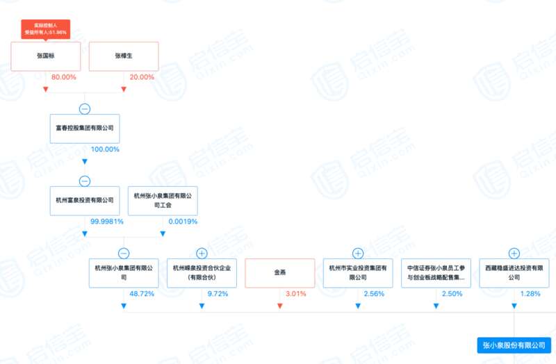 目前,张小泉的控股股东为杭州张小泉集团有限公司,实控人为张国标、张樟生和张新程。