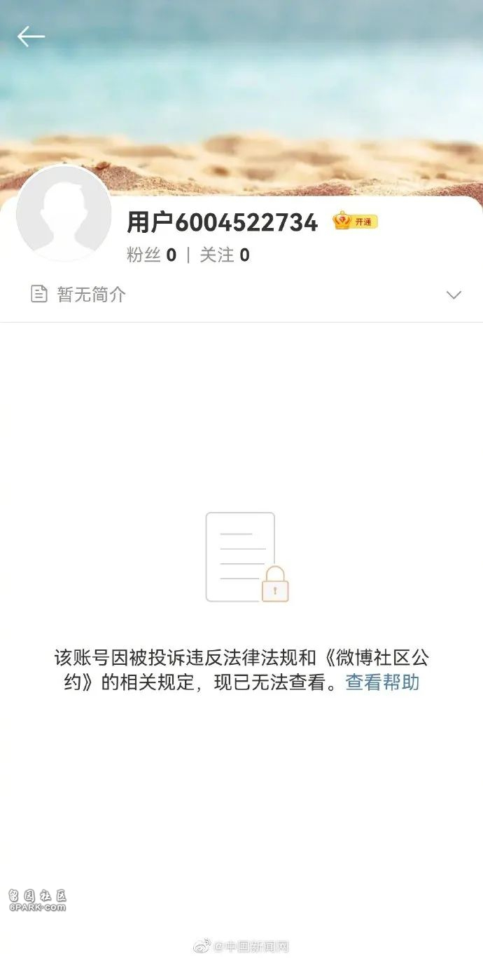 据@中国新闻网消息,记者7日注意到,此前因偷逃税被税务部门查处的艺人郑爽的微博账号,以及其工作室微博账号均已不显示。其原账号页面仅显示,该账号因被投诉违反法律法规和《微博社区公约》的相关规定,现已无法查看。