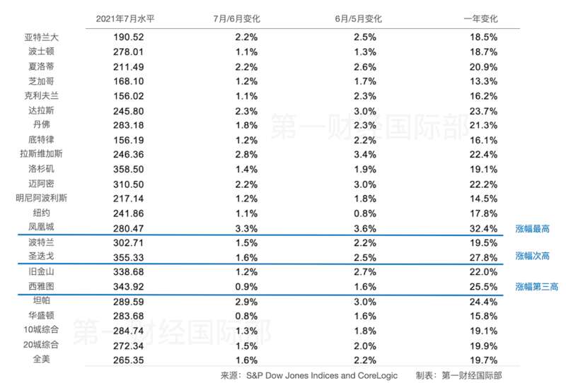 此次的数据还显示,纽约也加入了波士顿、夏洛特、克利夫兰、达拉斯、丹佛和西雅图的行列,录得其历史上最高的12个月涨幅。