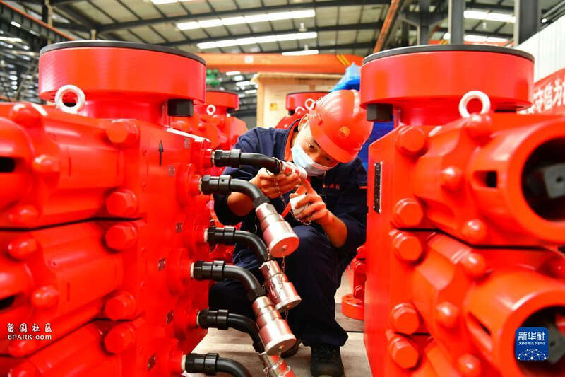 10月15日,在位于河北省任丘市的河北新铁虎石油机械有限公司,工人在检查产品质量。新华社记者 牟宇 摄