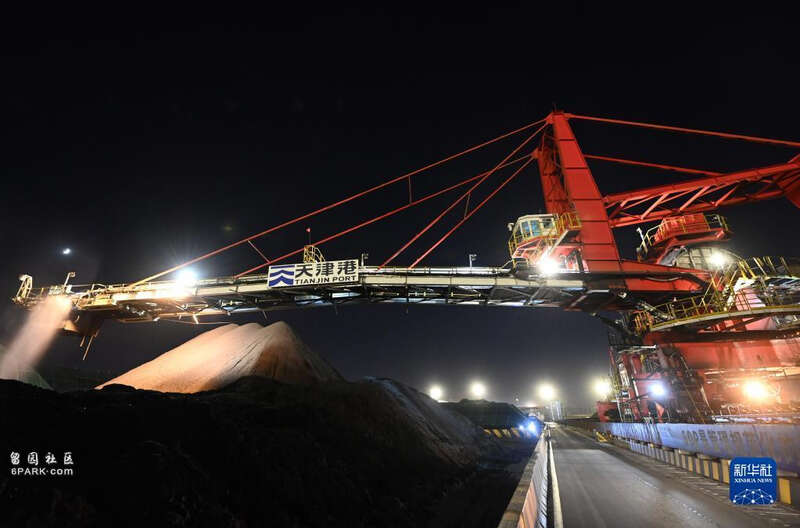 这是10月11日拍摄的天津港煤码头夜间作业一景。新华社记者 李然 摄