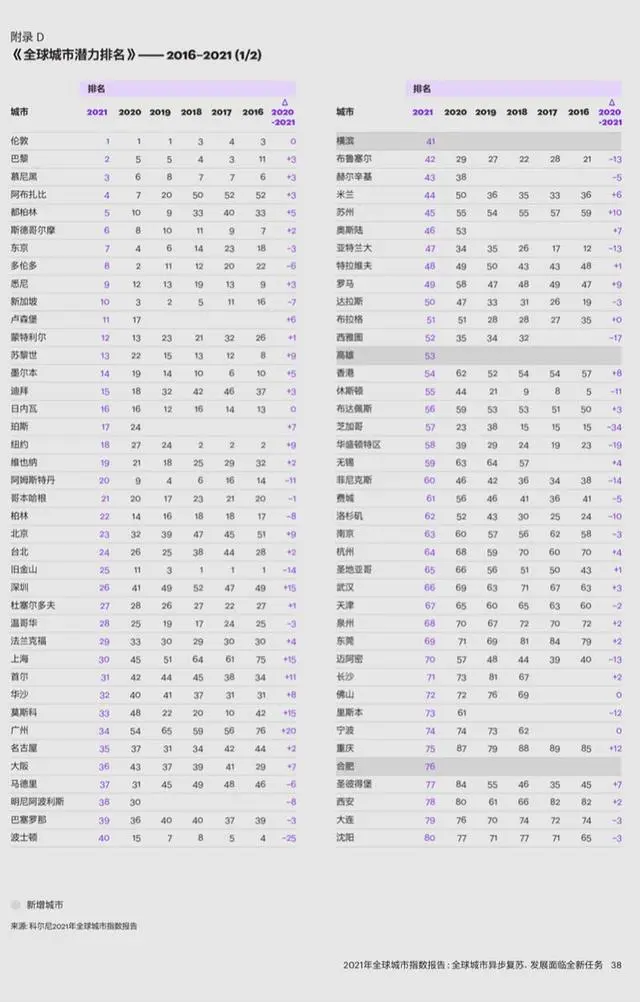 下面看看另一个榜单,2021《全球城市潜力排名》TOP80: