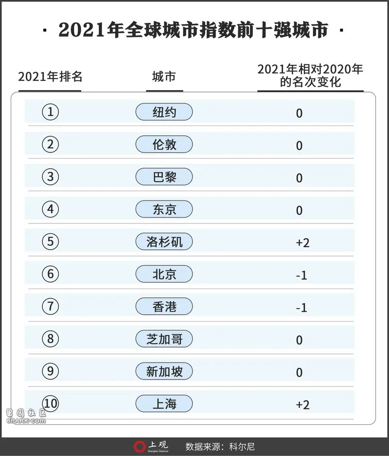 10月25日,全球管理咨询公司科尔尼发布2021年全球城市指数报告,共分为两个榜单,由《全球城市综合排名》(GCI)和《全球城市潜力排名》(GCO)两部分构成。