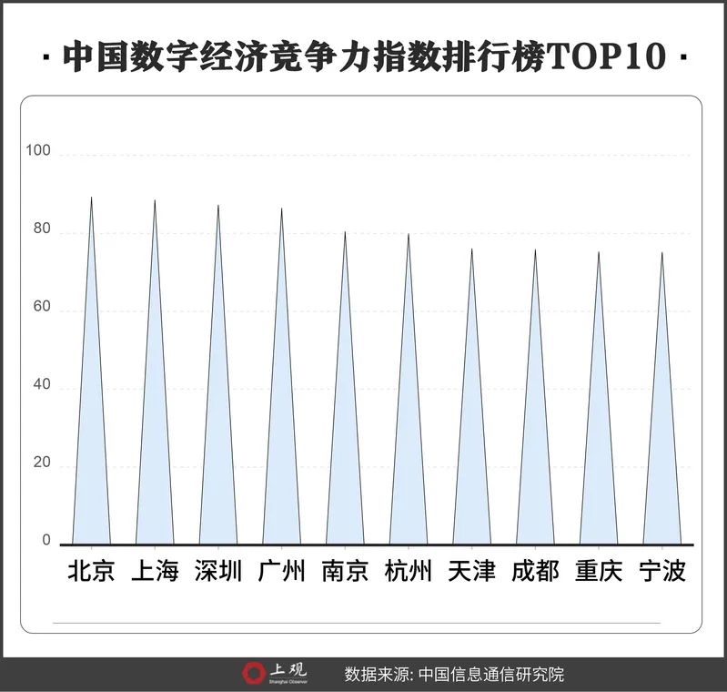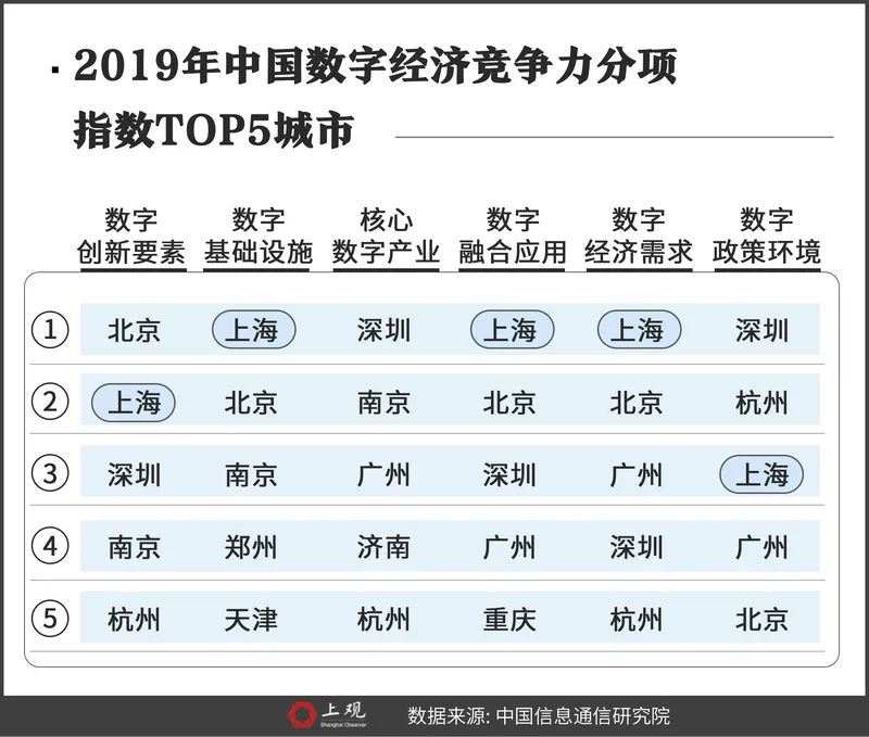 实际上,上海的独角兽企业数量增长相当迅猛。根据解放日报记者针对权威数据机构的综合统计,上海截至2018年2月的独角兽公司数量为29家,2021年则增长至47家,短短几年的增幅达到62%,增速甚至超过北京。全球疫情背景下上海凭借数字经济迸发活力报告指出,随着疫情的大流行,数字经济和先进技术得到了更加快速的发展和商业普及,而上海、旧金山等在数字经济持续发力的城市也将凸显其优势。中国信息通信研究院发布的《中国区域与城市数字经济发展报告》显示,2019年,北京、上海、深圳、广州、南京已成为中国数字经济竞争力排名前五的城市。