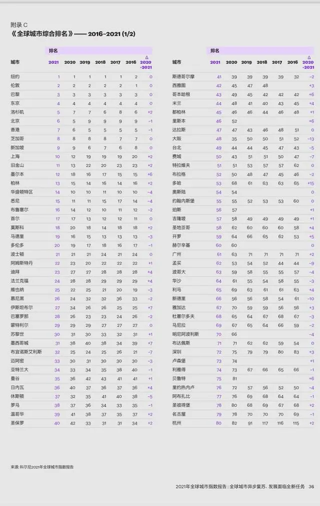 2021年《全球城市综合排名》(图片来自大刚观察)