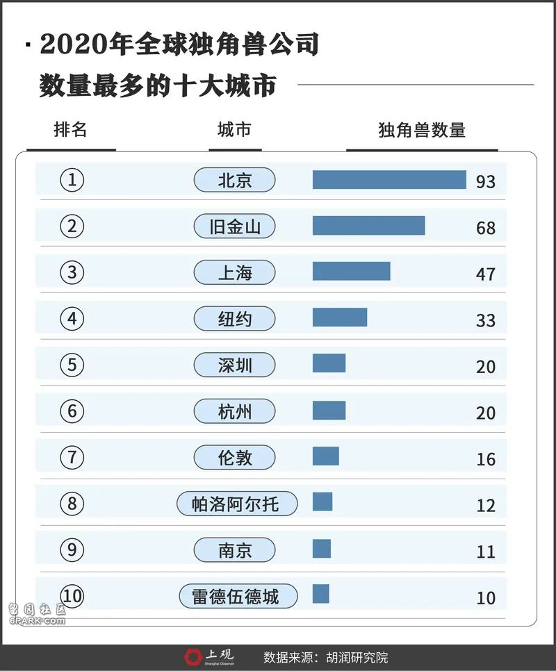 资本市场的活跃带动独角兽企业数量跃升至全球第四,上海正在持续向全球第一梯队城市迈进。