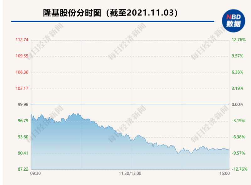 11月3日早10时30分,“光伏巨头”隆基股份(601012,SH)突发跳水,股价一路下挫,午后开盘跌幅更是扩大至9.67%触及跌停。