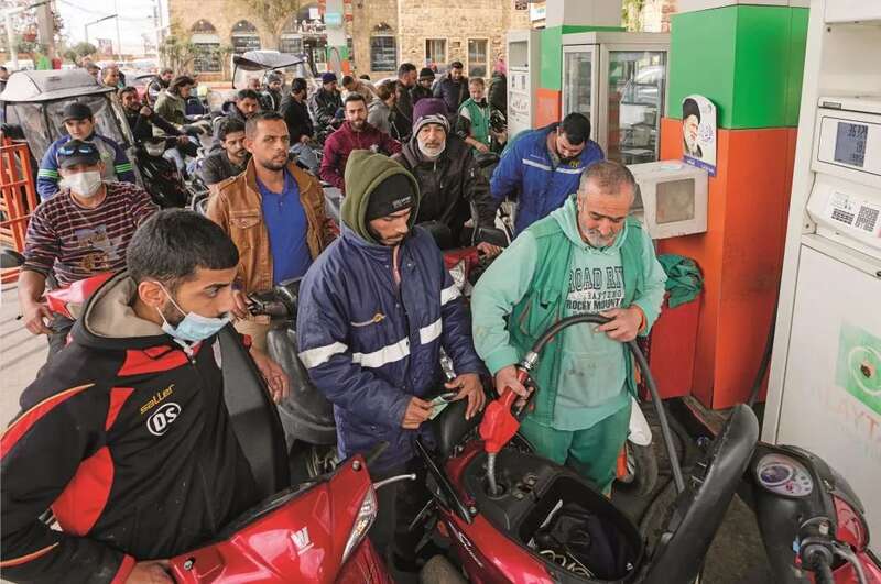 3月7日,黎巴嫩贝鲁特,当地油价高涨,司机们在一处加油站排队加油。图/视觉中国