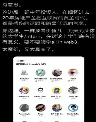 当下的美国年轻人们,正进入网上聊天室发出自己的疑问:我该继续读书还是辍学去研究一个去中心化的未来?