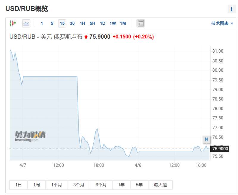 美元兑卢布汇率在经历昨天的大跌之后,目前保持相对稳定。
