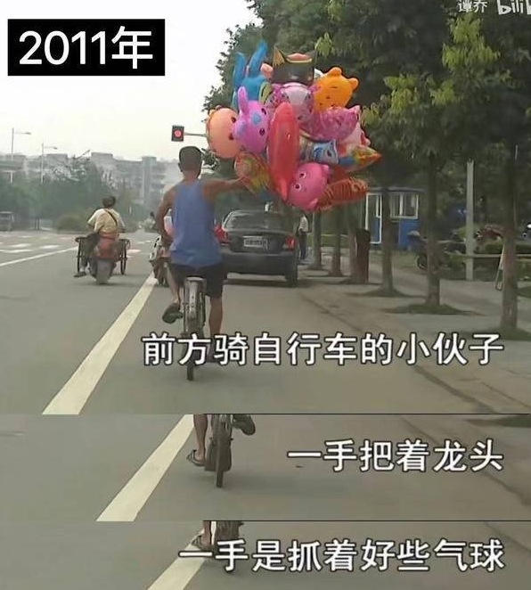 11年前,气球哥在《谭谈交通》左手把车头右手举气球,肆无忌惮的在机动车道“危险驾驶”,还在警察批评教育时疯狂唱山歌整活。