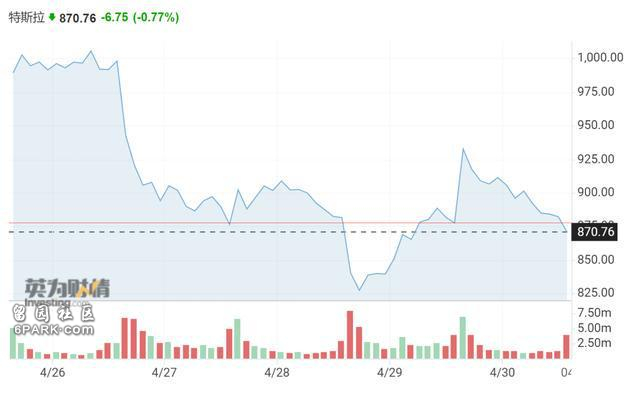 推特董事会批准马斯克收购计划次日,特斯拉股价收盘大跌超12%,报876.42美元/股,市值蒸发超1000亿美元。截至周五收盘,特斯拉股价报870.76美元/股。