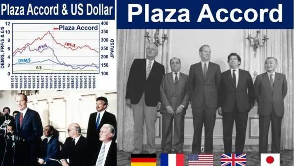 1985年9月,实在熬不住的美国召集德国、法国、英国和日本在纽约广场饭店开了个会,这就是著名的“广场会议”。