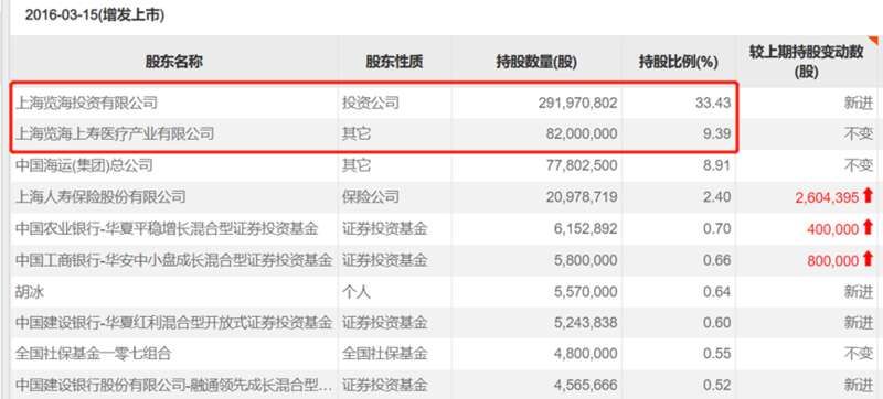 资本运作后的前十股东