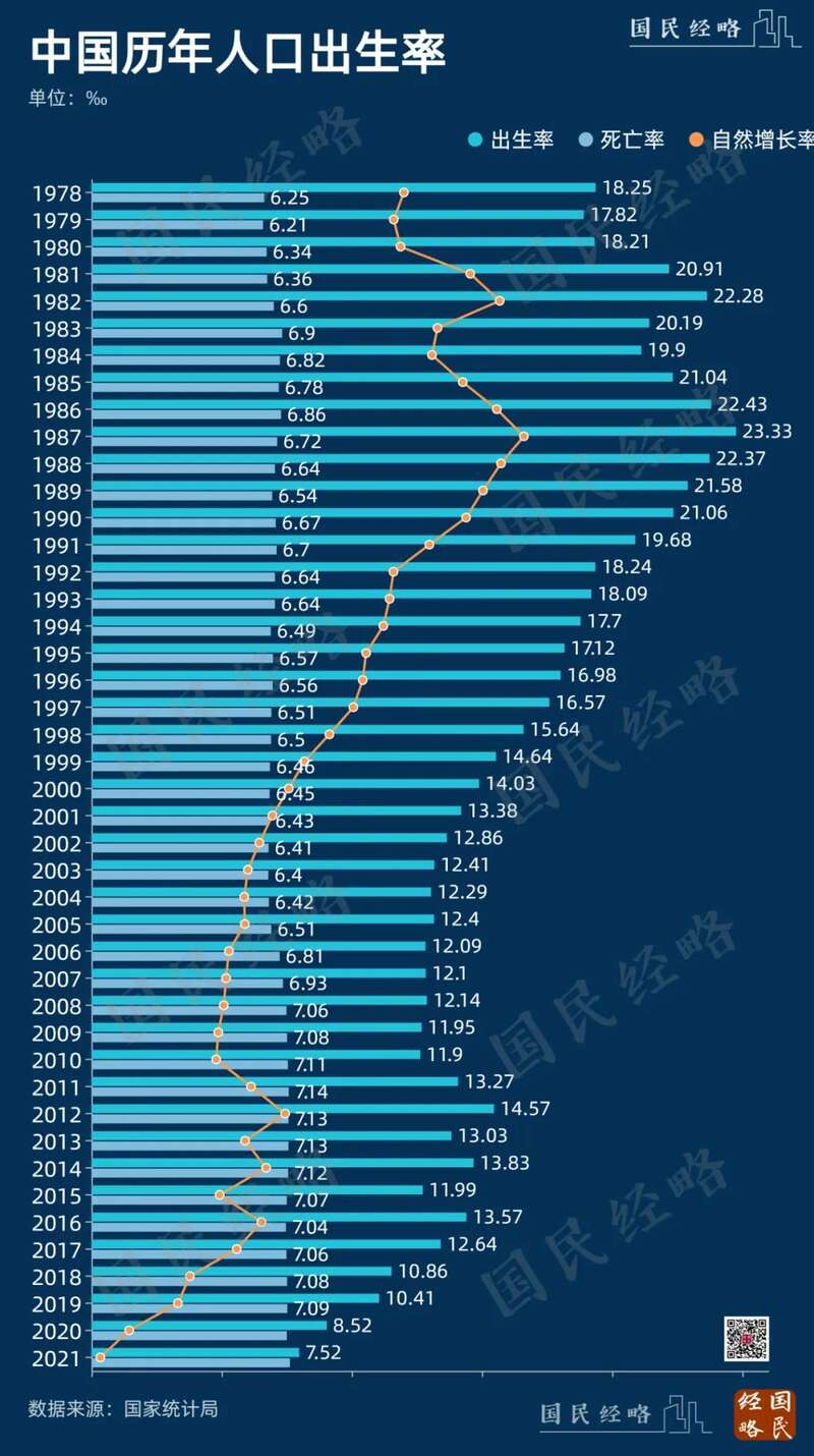 根据《总人口将负增长》一文提供的数据,2021年,全国人口出生率仅为7.52‰,创下了有数据记录以来的历史新低。当年,全国新增人口仅48万,离负增长只有一步之遥。