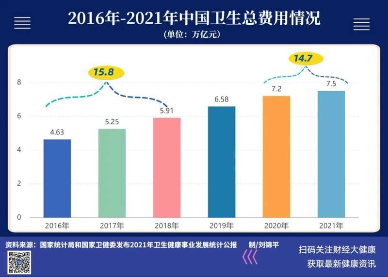 2022年7月,国家卫健委初步推算,2021年全国卫生总费用支出逾7.5万亿元。这个数和2020年差不多。