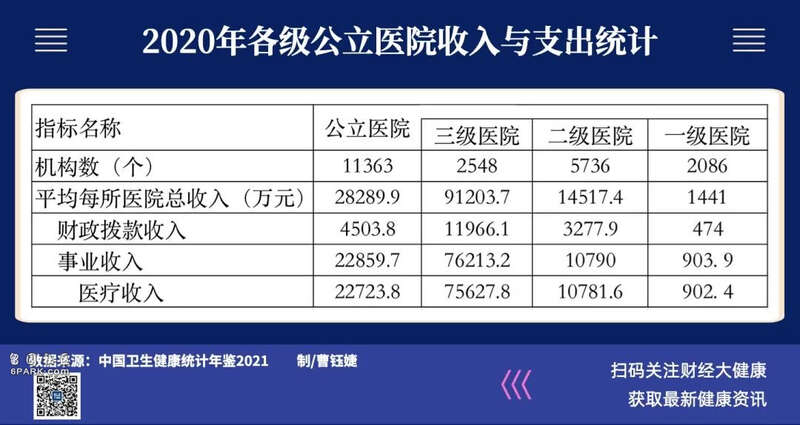 根据中国卫生健康统计年鉴,2020年中国公立医院总收入3.21万亿元,意味着,全国42.8%的卫生费用花在此处。