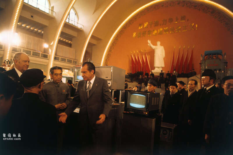 尼克松总统1972年访华期间在上海参观一个展览。 BETTMANN/GETTY IMAGES