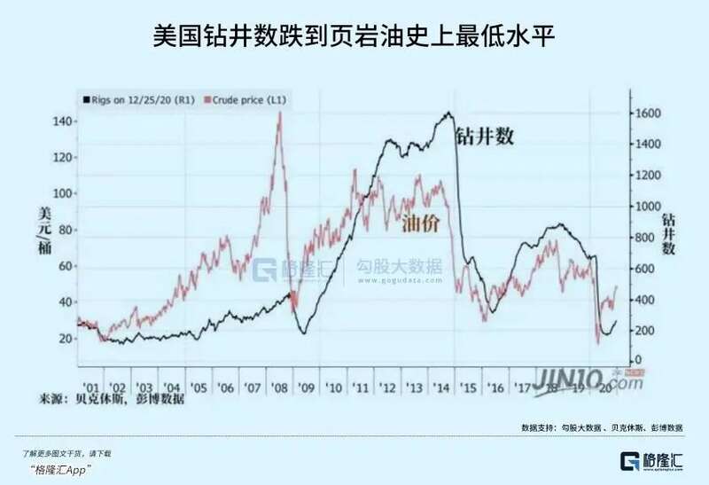 后来,油价遭遇供需双杀,狂泻至26美元/桶,较2014年大幅暴跌74%,狙击了美国页岩油的爆发。