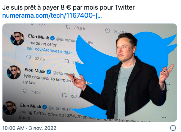 “Nous verrons quelles seront les règles, s’il faut que je cotise chaque mois huit euros à monsieur Musk, ça me fera un peu mal.”