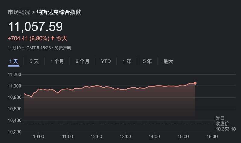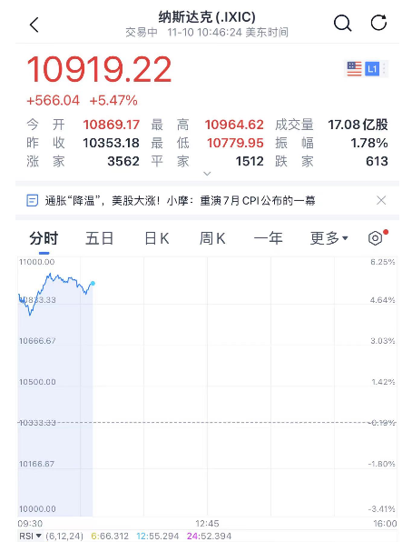 美股正式开盘后,道指一度暴涨900点,纳指暴涨5%!中概股也是暴涨,总之,盘面就是疯牛的场景!