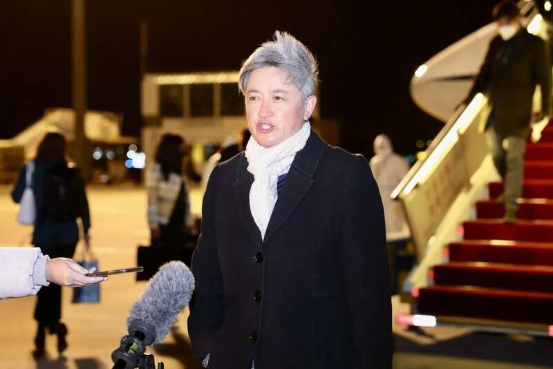 ▎2022年12月20日,北京,澳大利亚外长黄英贤抵达北京机场后发表讲话。 图源 : 人民视觉