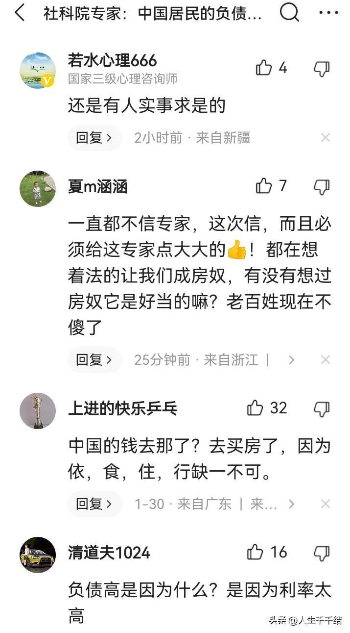 “这是真正的良心专家!”网友留言感叹。2月4日中国社科院专家称:“中国居民负债太高了,赚100块钱有超50块要拿来还债。”