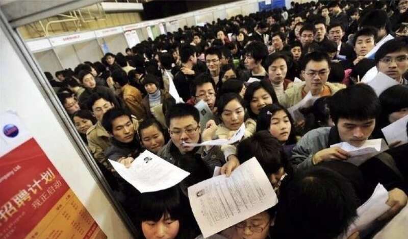 中国经济熄火,年轻人为了找工作挤破头。(图取自微博)