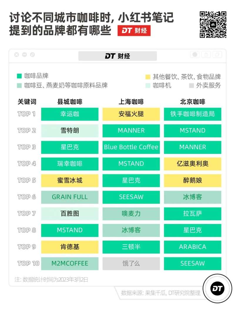 讨论不同城市咖啡时,小红书笔记提到的品牌都有哪些图片来源:DT财经数据来源:果集千瓜,DT研究院整理