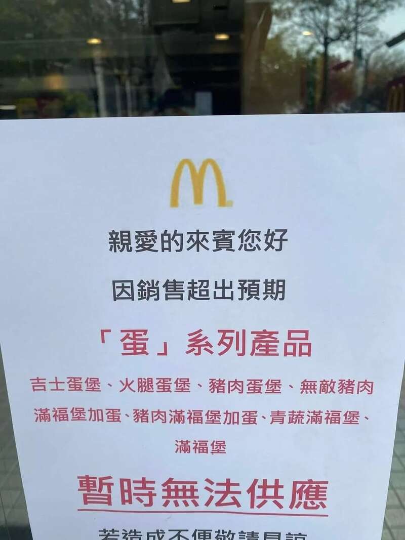 就连快餐霸主麦当劳都放弃了抵抗,宣布鸡蛋系列产品全部暂时停售。