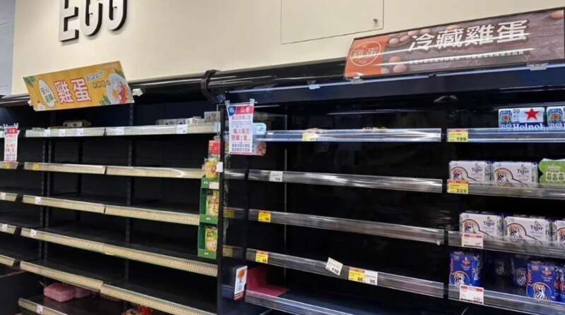 由于岛上一蛋难求,超市货架被扫劫一空,鸡蛋不仅限时购买,还限购。