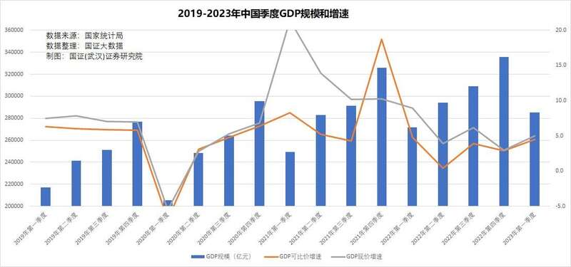 根据4月18日国家统计局公布的数据,一季度国内生产总值28.5万亿元,按不变价格计算,同比增长4.5%;按现价计算,同比增长5%。