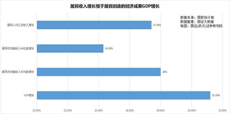 第二、居民工资性收入增长低于居民可支配收入增长。
