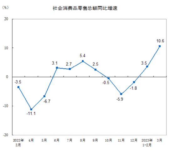 今年一季度,社会消费品零售总额达到114922亿元,同比增长5.8%。尤其是3月份,社会消费品零售总额37855亿元,同比增长了10.6%!