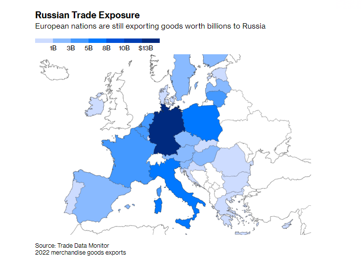 欧洲国家仍在向俄罗斯出口价值数十亿美元的商品