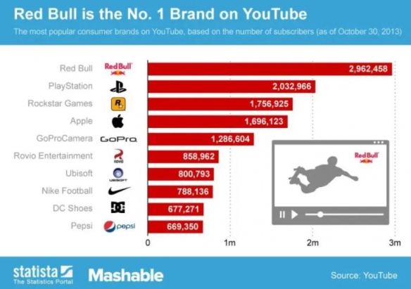 我们今天能在各种赛车、滑翔、滑雪、攀岩、跑酷、蹦极,甚至载人飞船上看到红牛的标志,都是因为红牛是赞助商。