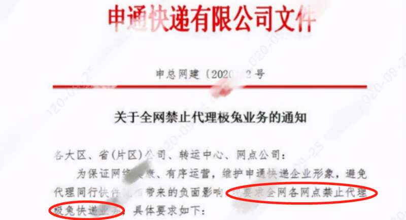 申通的封杀通知则更为强硬,如果网点公司不执行要求,一经核实,罚款 5000-20000 元,情况严重的作清退处理。