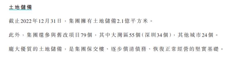 中国恒大称“庞大优质的土地储备,是集团保交楼、逐步偿清债务、恢复正常经营的坚实基础。”