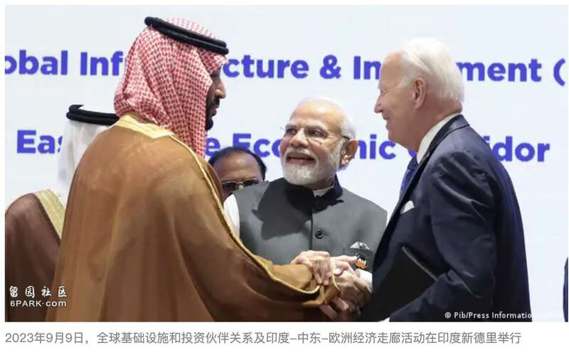 根据白宫发表的声明,美国、印度、沙特阿拉伯、阿联酋、欧盟、法国、德国和意大利就三方经济走廊项目在新德里签署了一项原则性协议。