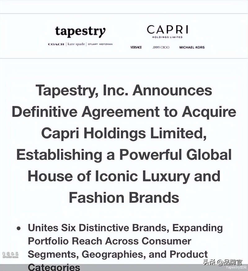Tapestry集团在今年也宣布了将以85亿美元的代价收购MK母公司Capri集团。
