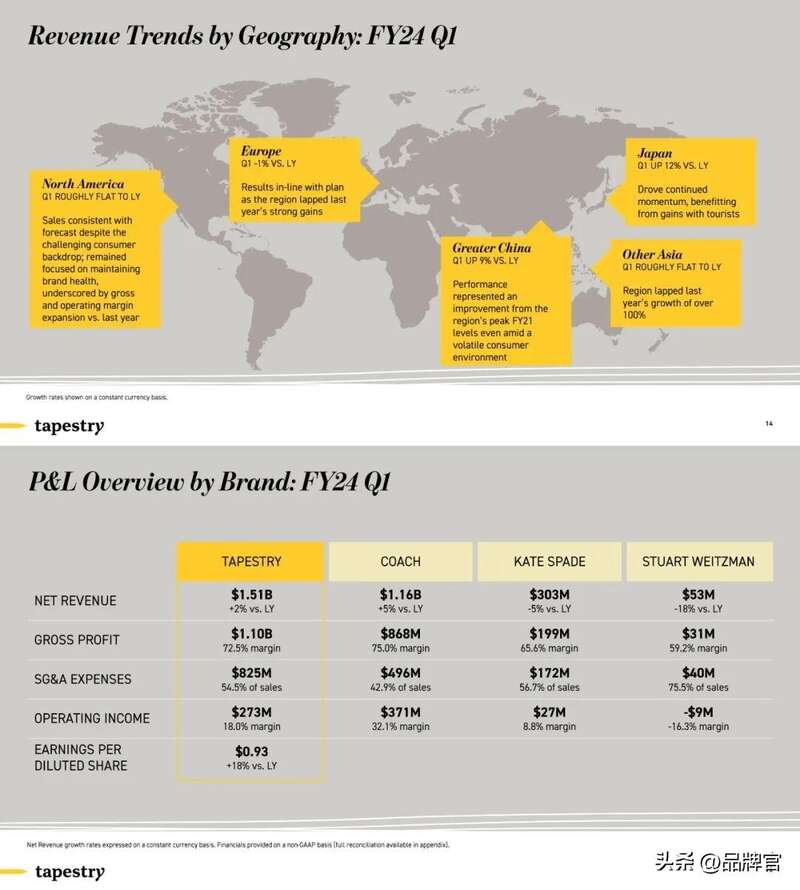 而一边的Coach母公司Tapestry也一样惨淡,2023财年的销售额和去年一样,为66.6亿美元,基本上没赚钱。
