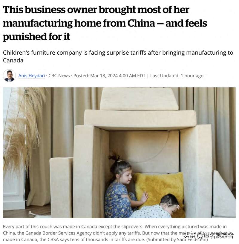 Feldstein感觉自己很冤枉,明明将制造业从中国迁移到了加拿大,却因此受到了惩罚。于是Feldstein联系了英文媒体CBC。