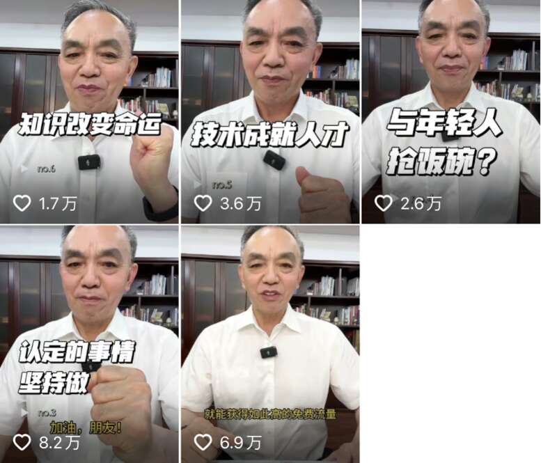 在老人的抖音账号里,每一条视频都由他亲自出镜,分享自己的日常工作生活,内容非常接地气。