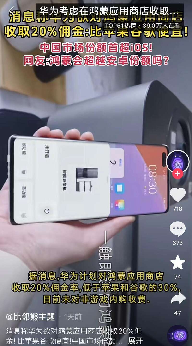对鸿蒙应用收取20%佣金分成,步子迈早了