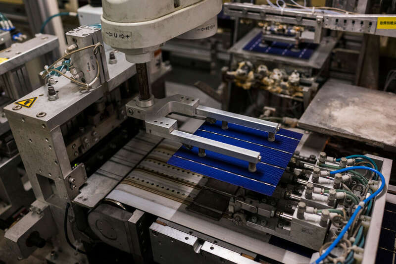 机器人等设备正在生产太阳能电池板组件,2017年摄于合肥。 Adam Dean for The New York Times