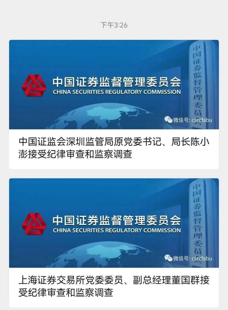 8月2日,中央纪委国家监委网站发布消息:中国证监会深圳监管局原党委书记、局长陈小澎,上海证券交易所党委委员、副总经理董国群涉嫌严重违纪违法,目前正分别接受审查调查。
