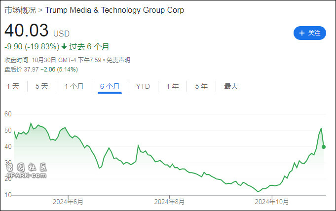 特朗普媒体科技集团(DJT)股价近6个月走势