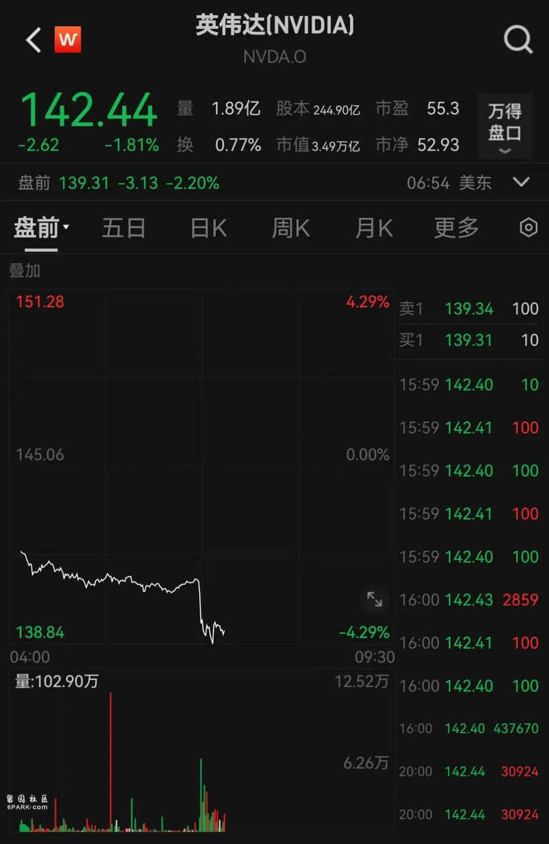 北京时间12月9日晚间,英伟达盘前下跌2.20%,股价报139.31美元/股。